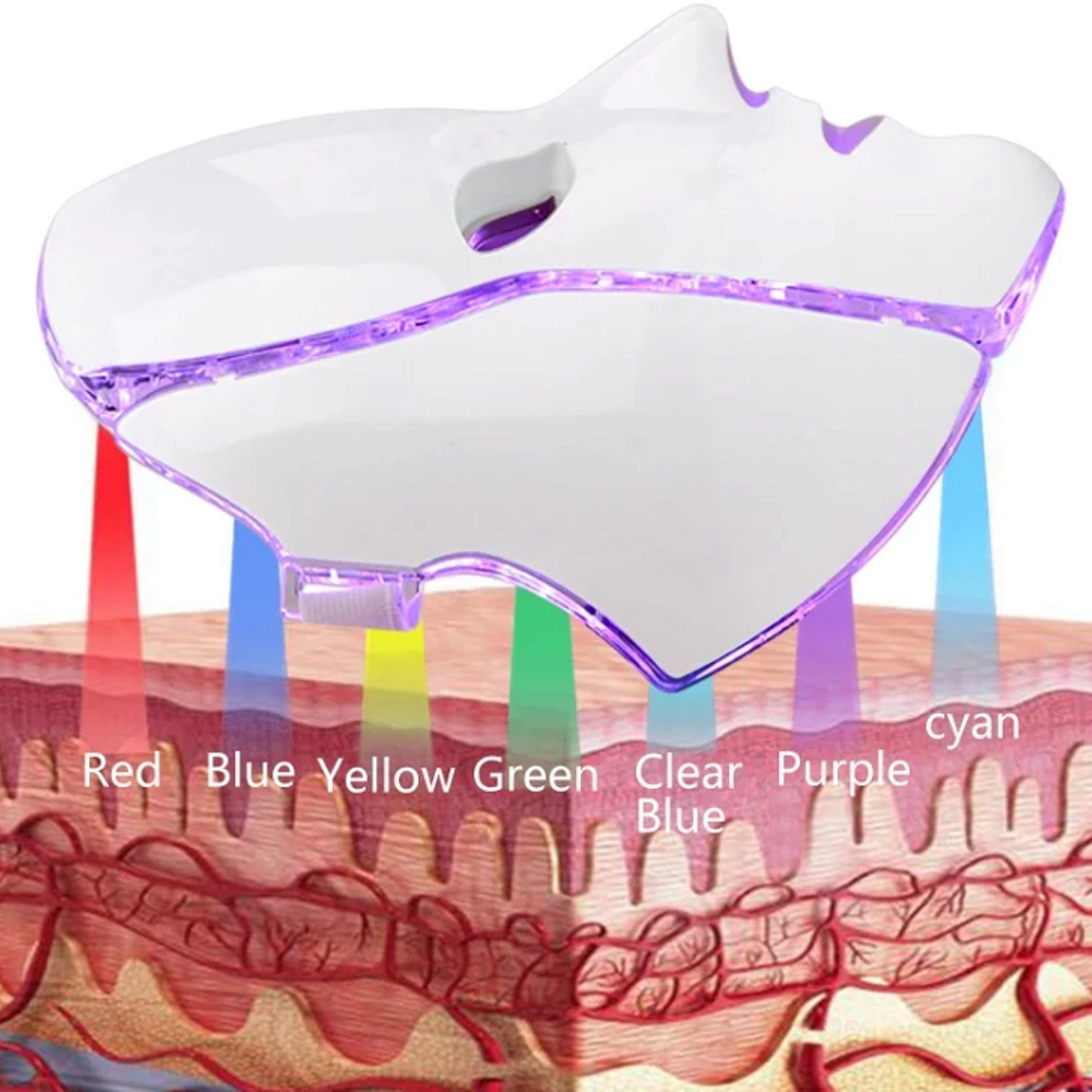 - Purple Light (600NM) - Combination of red and blue light. Relaxes and improves lymph metabolism, reducing scarring and wrinkles.