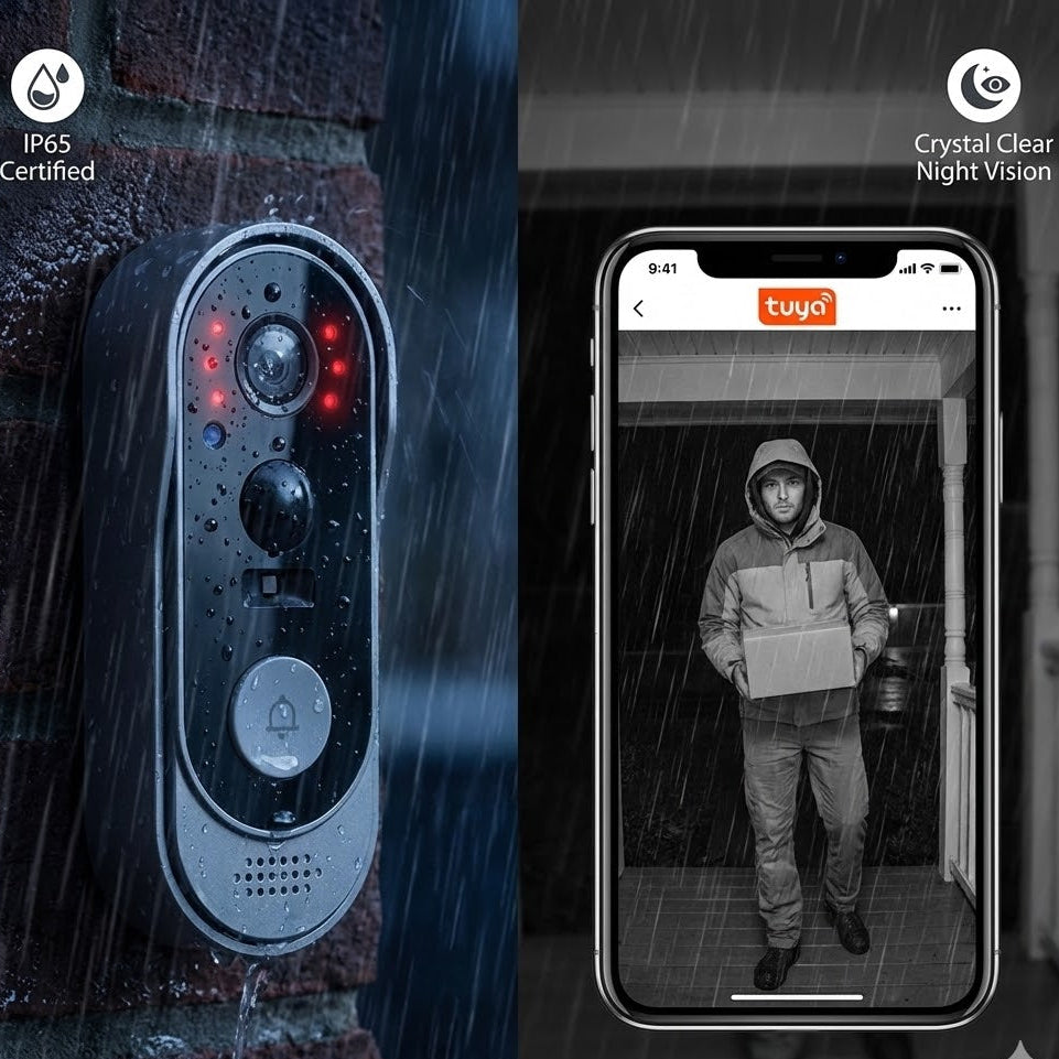 Enjoy reliable, high-definition visibility every time someone approaches your door. The camera adapts to any lighting condition, delivering crisp detail whether it’s bright daylight or complete darkness.