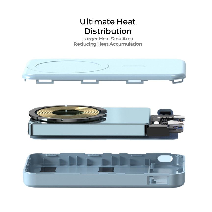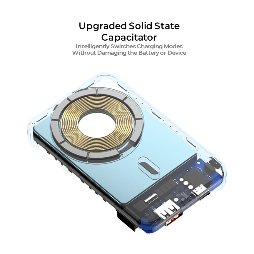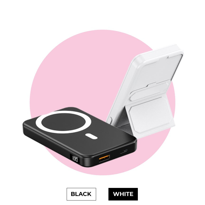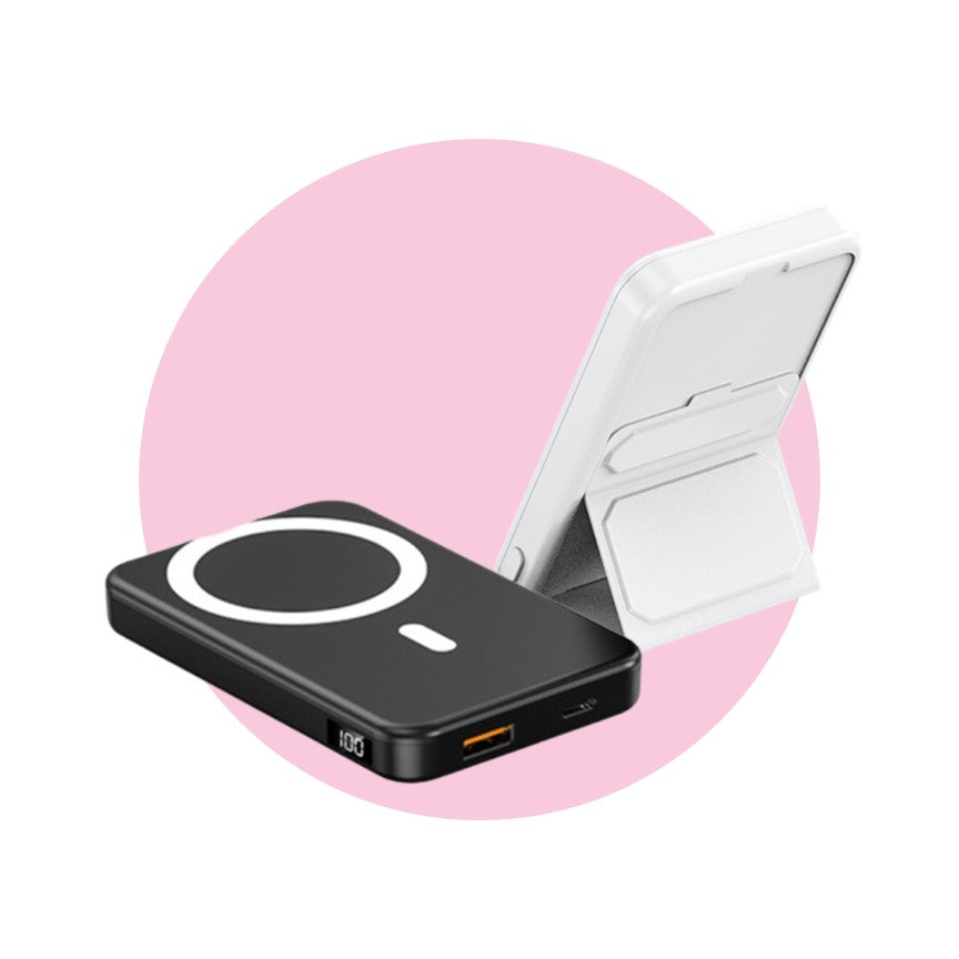 Stay powered up on the go with this 10000mAh MagSafe-compatible Power Bank. It wirelessly fast-charges your Qi-compatible gadgets, recharging up to three times. Equipped with a built-in stand and LED display, this power bank supports multi-device charging with MagSafe, USB-C, and USB-A, delivering up to 22.5W power. 🔋