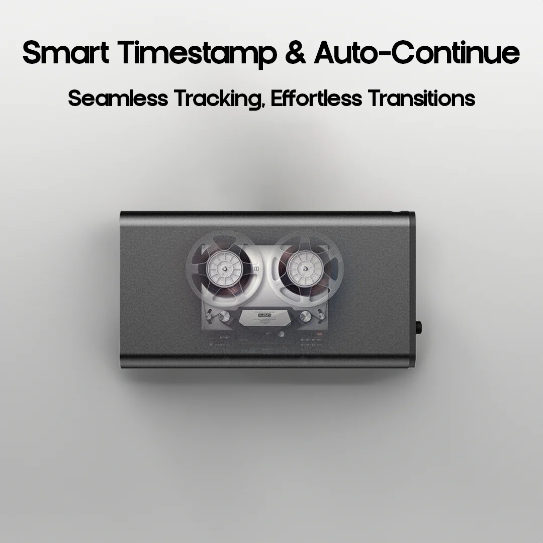 Auto-starts when sound is detected — no silent gaps, no wasted memory.