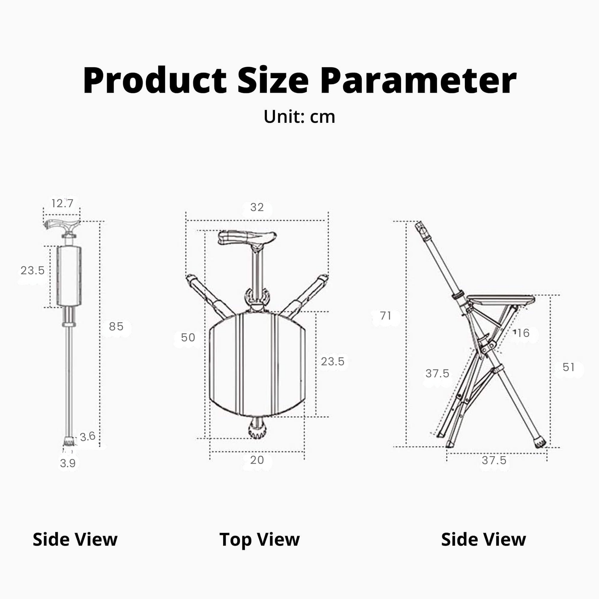 - Product Name: Folding Walking Cane with Built-In Seat