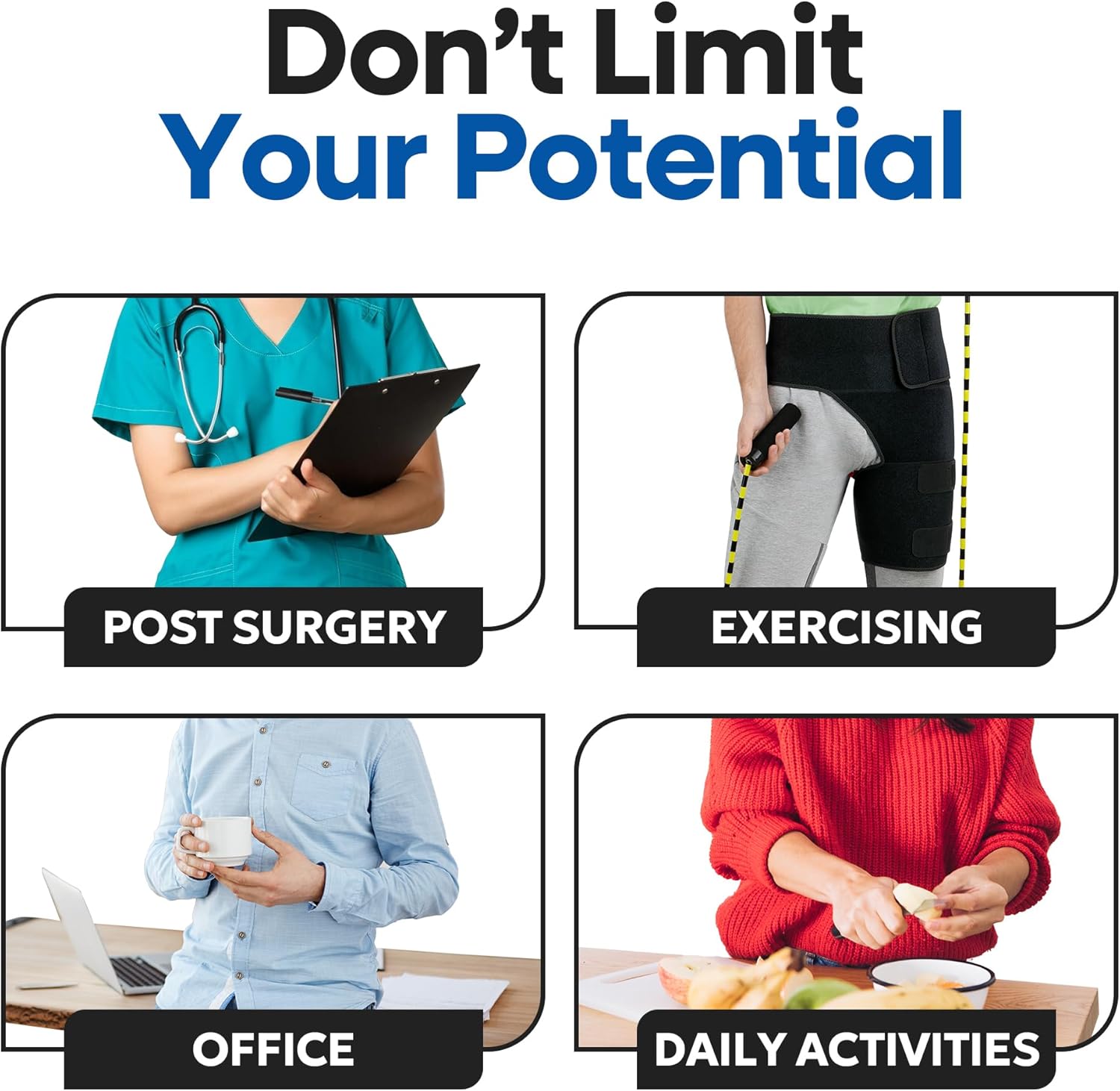 - SCIATICA PAIN RELIEF: Stabilize and support your hip and thigh muscles with our hip brace for men and women. Hip compression sleeve hugs your hip joint so you can move freely again without stiffness. Fits left or right legs like a glove. PLEASE DON'T ASSUME YOUR SIZE - MEASURE BEFORE ORDERING