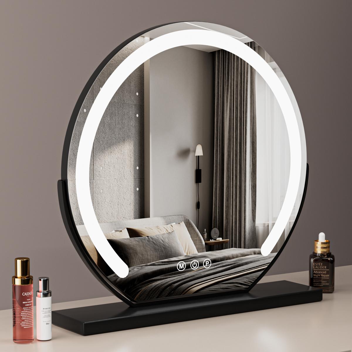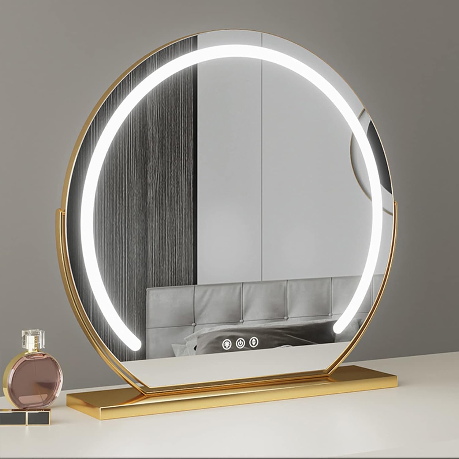 This lighted vanity mirror features a rounded design that eliminates corners. ensuring consistent and even light distribution. Its elegant style adds sophistication to any room while allowing you to see your face perfectly.