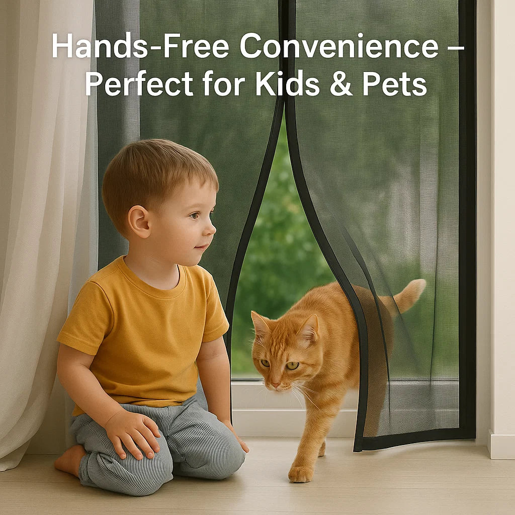 The screen opens effortlessly and auto-closes behind you, thanks to its magnetic closure system. Enjoy a hands-free, bug-free experience—perfect for pets and kids moving through windows or wide openings.