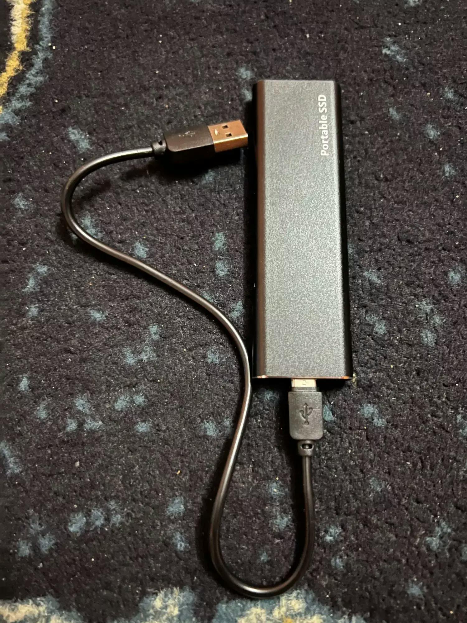 Included: Portable SSD, USB-C to USB-C cable, USB-C to USB-A adapter