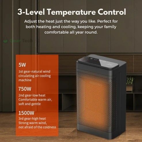 Features: Intelligent timing, thermostat control, three gear settings, remote control, temperature display, low noise operation, overheating protection, anti-fall switch