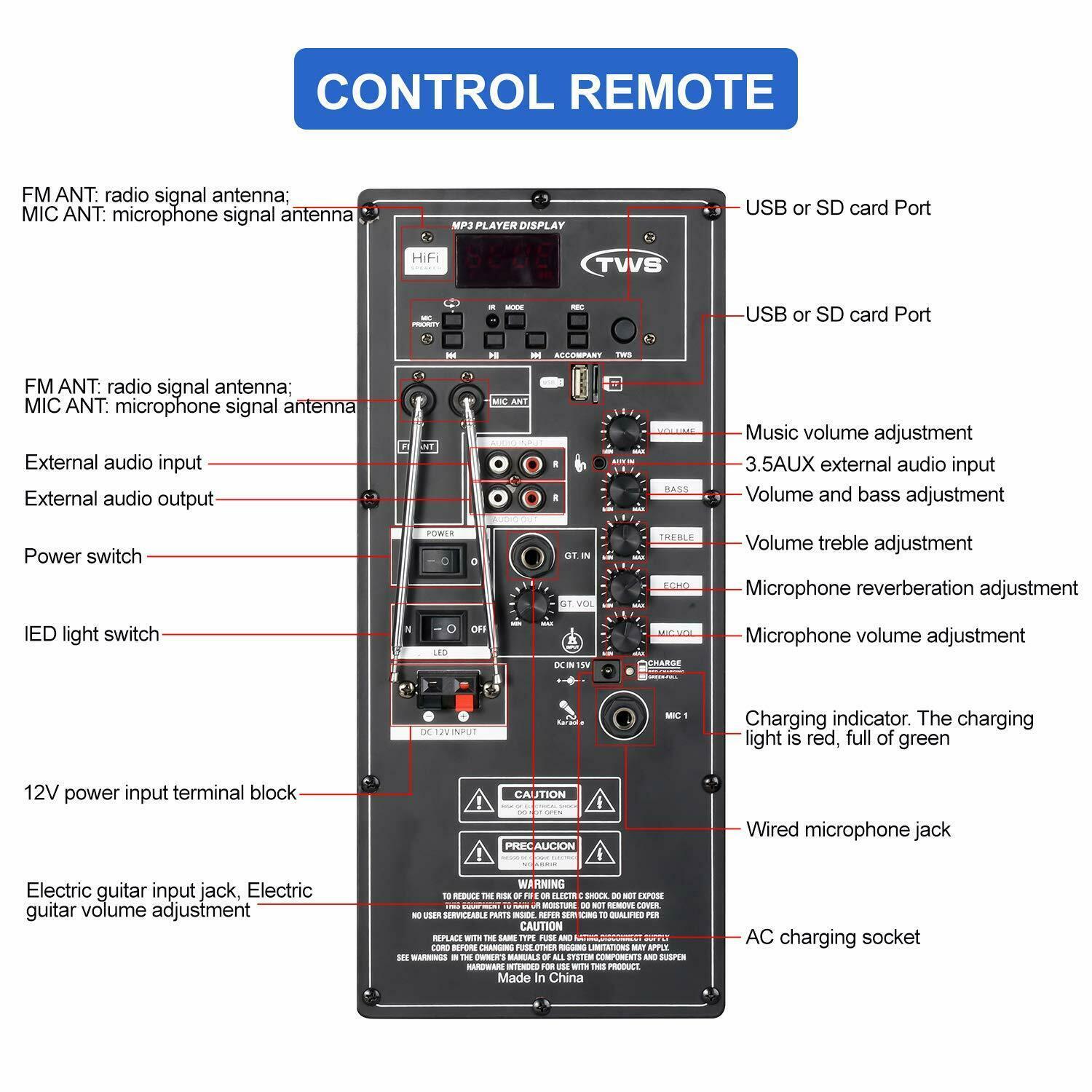 Powerful Functions: Our indoor/outdoor speaker system has a built-in Bluetooth with wireless range of up to 33ft. Easy connection to Bluetooth, AUX, Micro SD/USB input, FM radio. Powerful accompaniment for a more enjoyable music experience. Works with all of your favorite devices and perfect match with your guitar. Take your guitar and the portable karaoke machine to enjoy the journey filled with wonderful music.