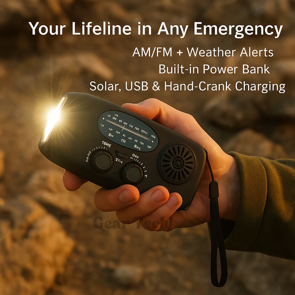 - 📌 Power Sources: Solar, USB, Wind-Up Crank