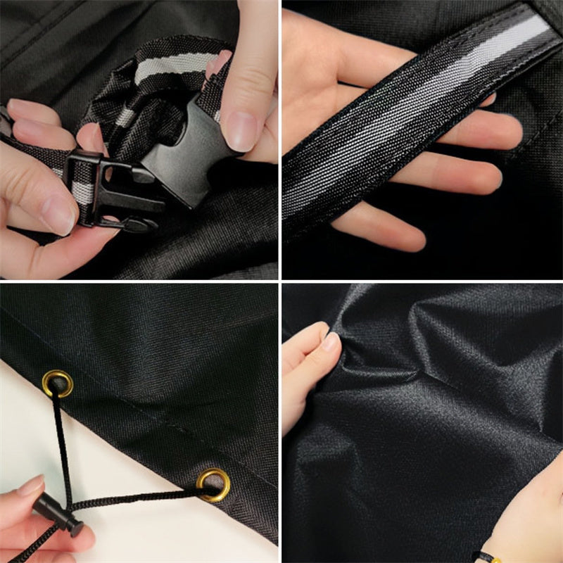 Equipped with elastic hem drawstrings and adaptable buckles. this cover can be customized for a snug fit. Vents allow for airflow. reducing condensation. while reinforced padded handles make it easy to put on and take off.