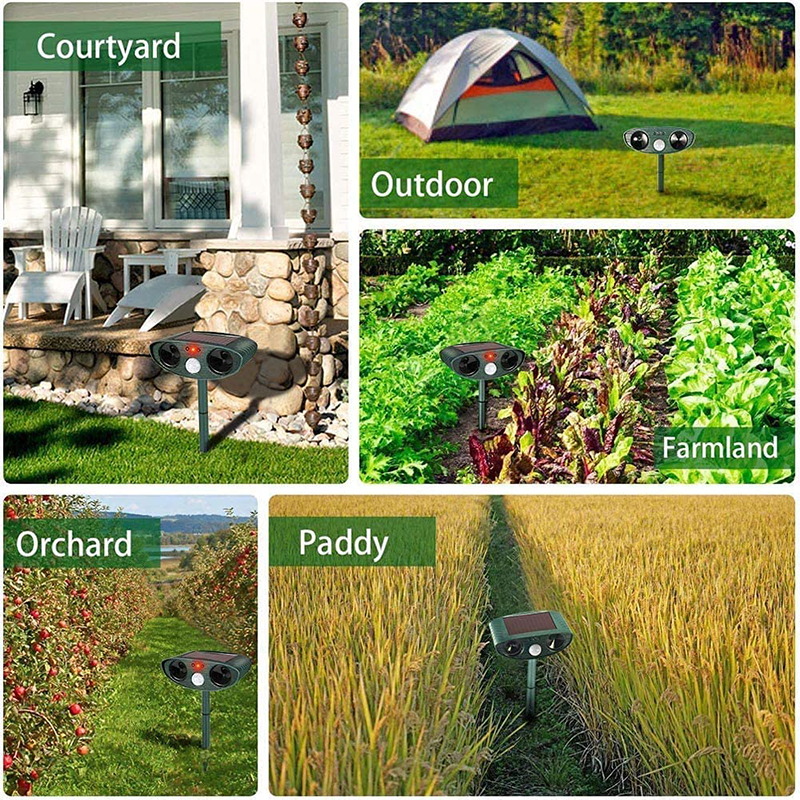 Strong LED flashes reinforce the threat, deterring rabbits during dawn, dusk, and nighttime hours.