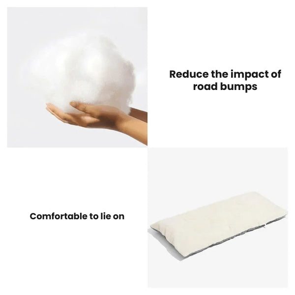 Made with pure cotton canvas, filled with PP cotton for excellent comfort. The breathable, non-slip base minimizes shocks and road bumps. -