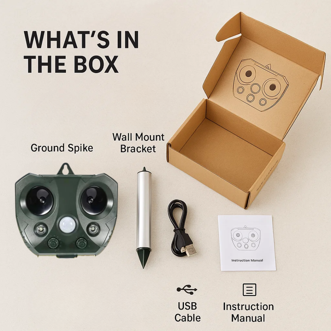 This device is equipped with a precision 110° PIR motion sensor. When movement is detected within a 9m range, it activates a powerful ultrasonic pulse and flashing LED lights, scaring pests away instantly. Think of it like a high-tech scarecrow, except smarter, silent, and always on duty.